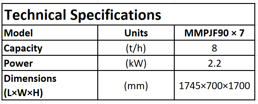 The MMPJF90 × 7 White Rice Grader is engineered to precisely grade and sort all types of particles generated during the rice processing procedure. It functions primarily in the grading of milled rice as well as the initial grading of other particles. Key features include stable operation, high grading accuracy, long service life, and simple operation and maintenance. This grader plays a crucial role in ensuring that the final rice product meets strict quality and uniformity standards.